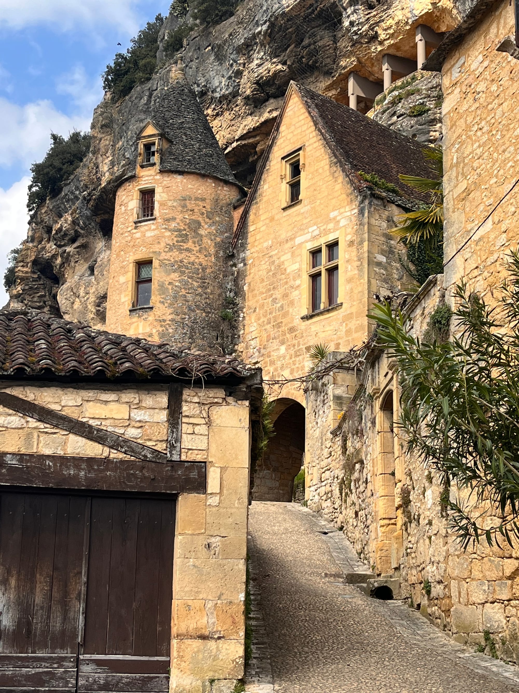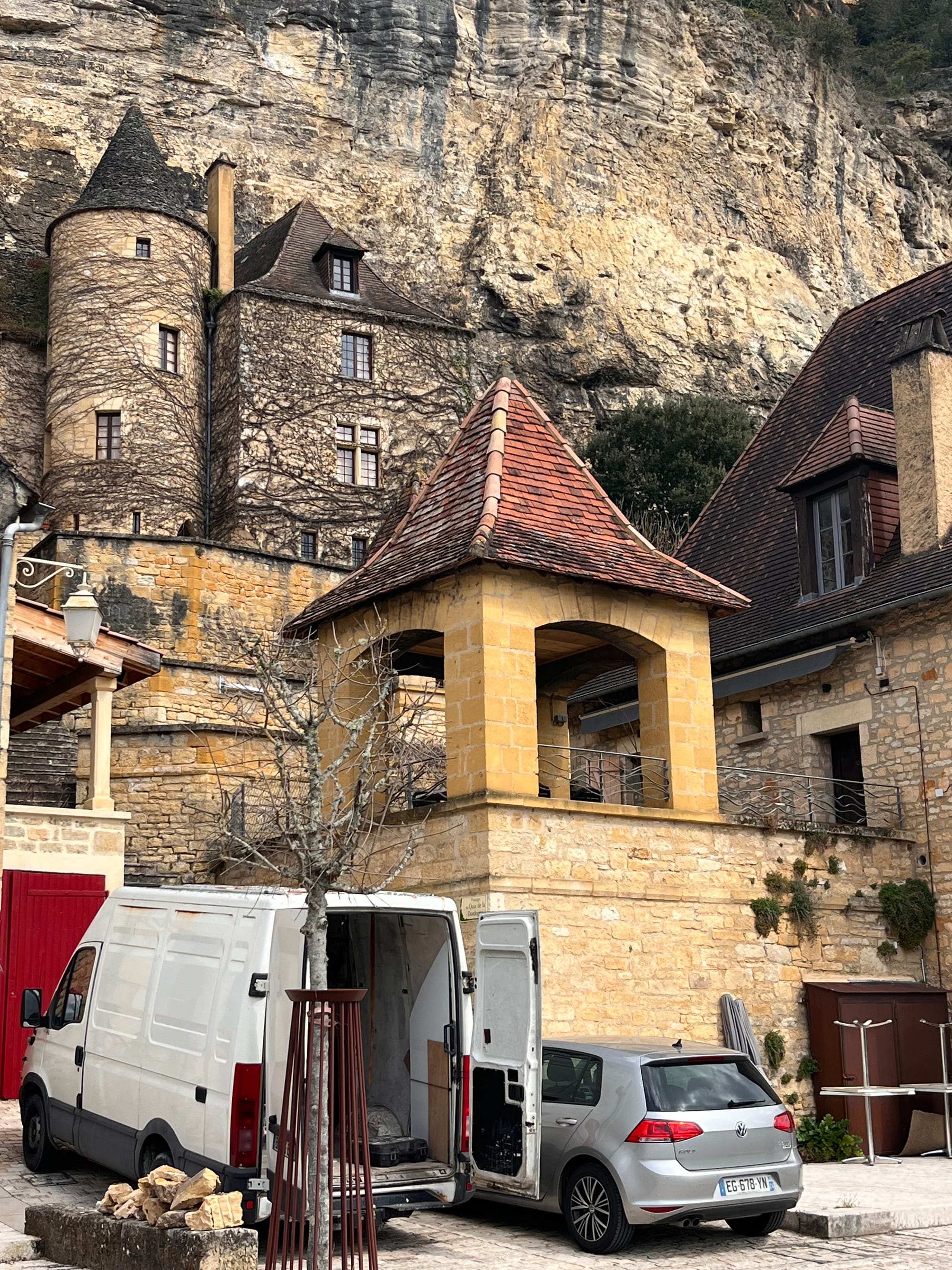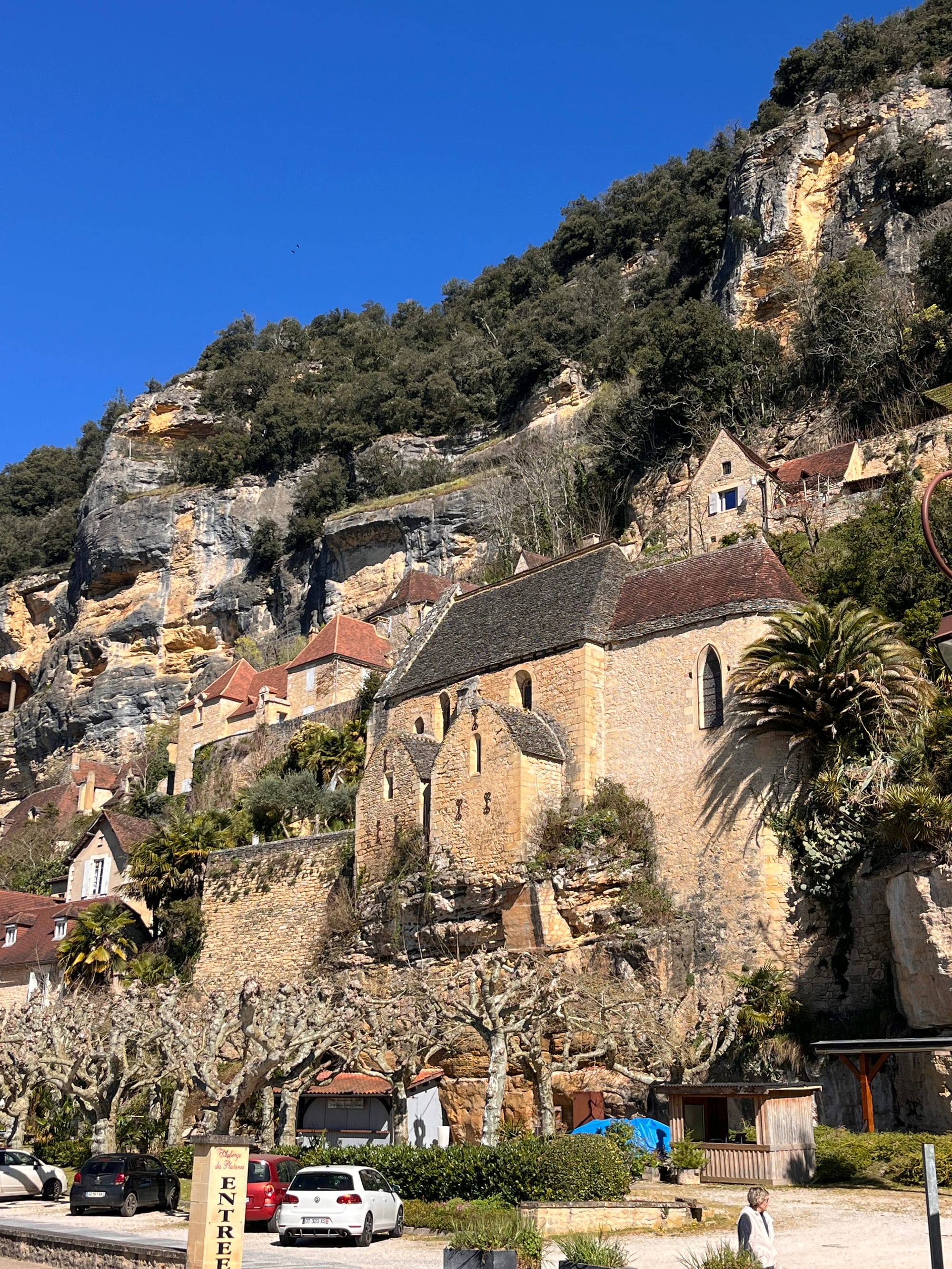 So I’m leaving my cute little village in the cliff, La Roque-Gageac, and have driven all of 10km to a new village with a castle, Montfort